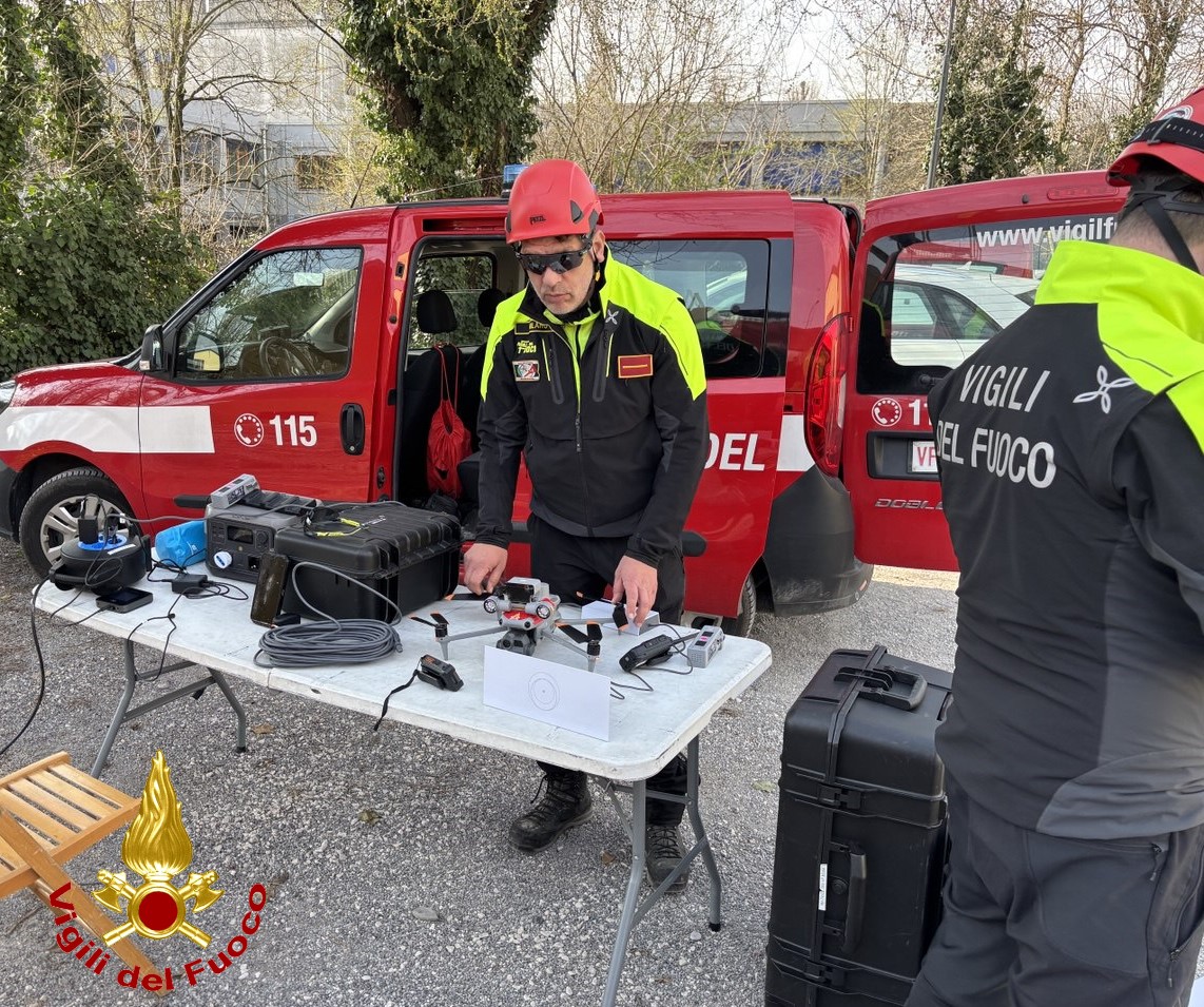 Parallelamente sono state attivate diverse unità specialistiche: i tecnici TAS del Comando di Brescia per la mappatura del territorio, il nucleo SAPR della Direzione Regionale Lombardia con i droni, le unità cinofile dei Vigili del Fuoco di Bergamo e l’elicottero del Nucleo Elisoccorso di Malpensa.